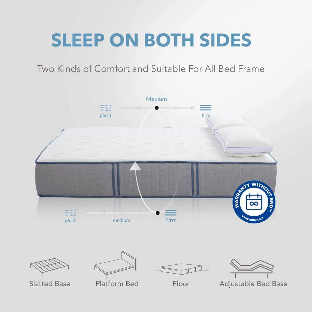 - Hybrid mattress that comes in either medium or luxury firm, extending the life of the mattress and giving you the flexibility to choose multiple in a single mattress