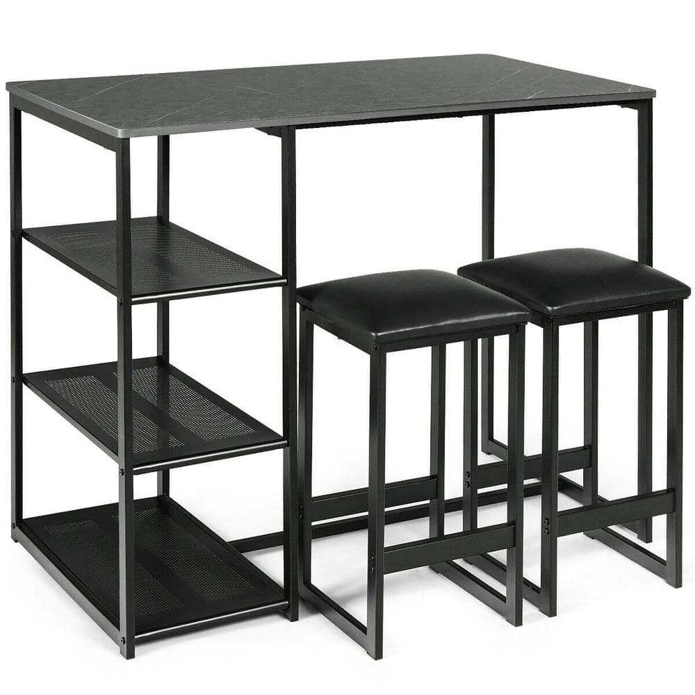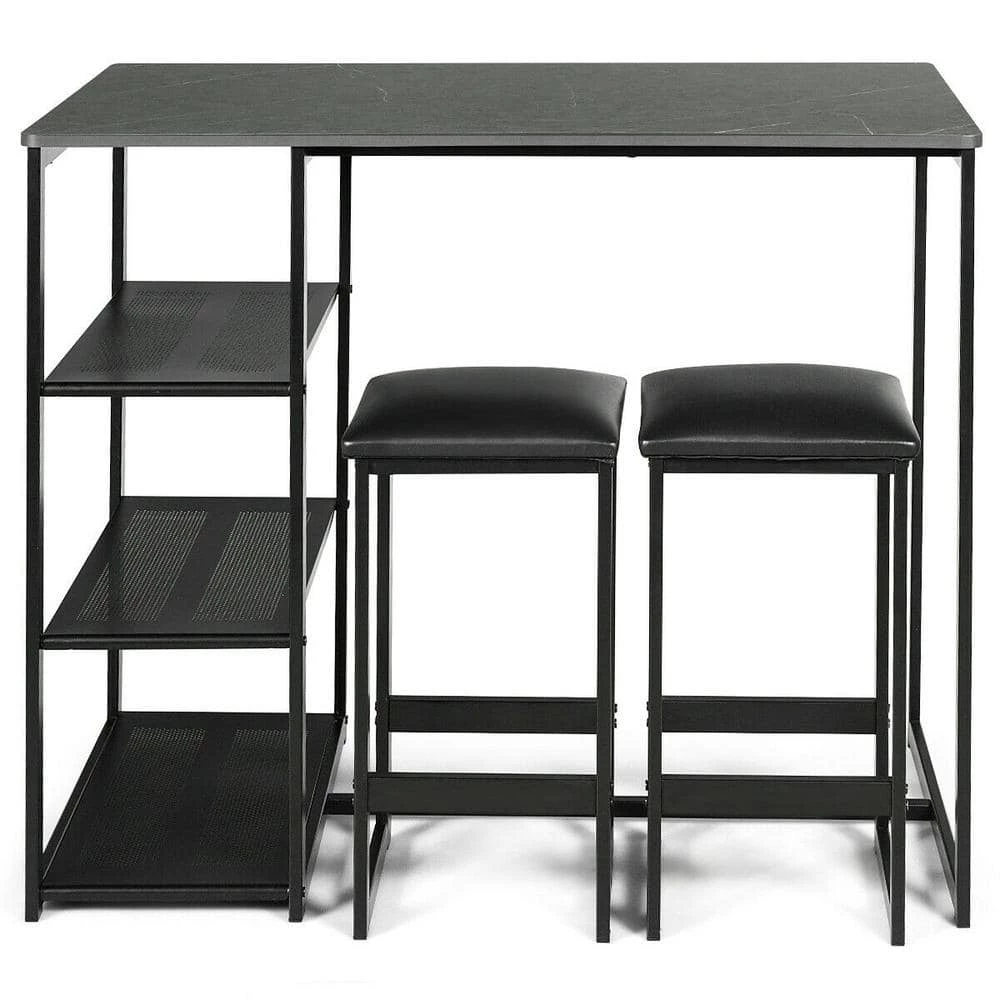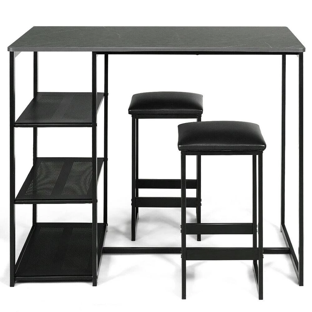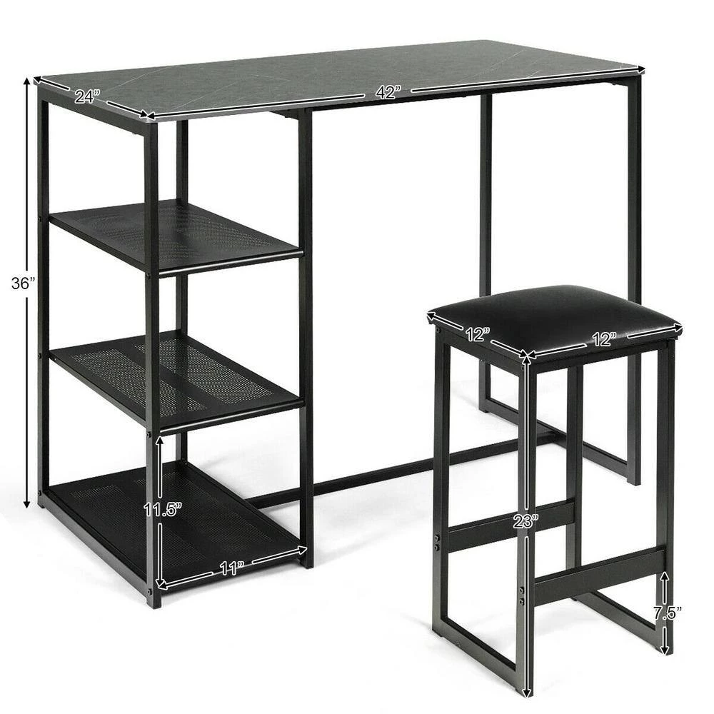 This pub table set uses a high-strength steel pipe as the main structure, which allows it has a high load-bearing capacity. Its retro brass color is very high-grade and beautiful. The table is set with a 3-layer metal frame, increasing the usable space, allowing you to put some newspapers and food. After all, this functional pub set provides a space-saving solution that is perfect for a breakfast nook, entertaining space, or to create your own pub.
