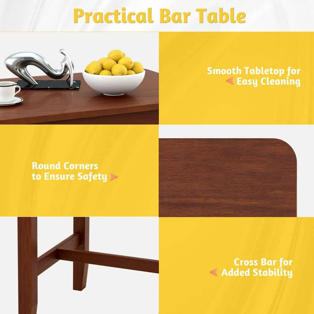 The wide tabletop brings much convenience to place glassware, food, cups, etc. The 3-storage shelves on the side maximize space utilization for people with limited space. Made of high-quality MDF board, this bar table is sturdy and durable for long-term use. The rubberwood legs and crossbar also increase the stability of the table. All in all, this multifunctional bar table with antique style is a good addition to your home, bistro, and other occasions.
