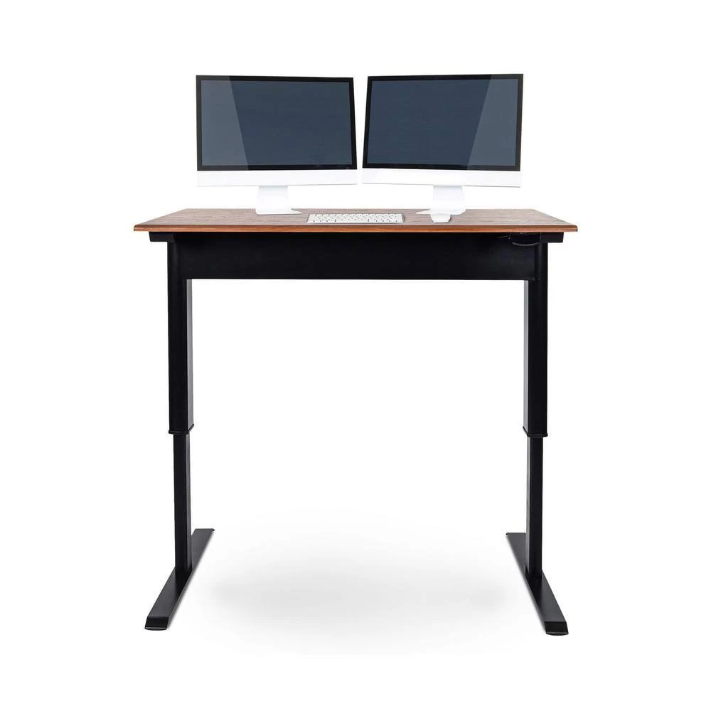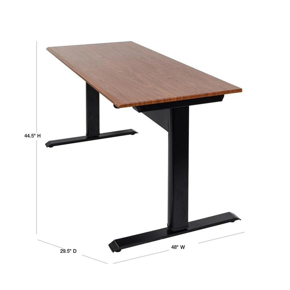 Seamlessly move between sit and stand through the work day with the 48 Pneumatic Adjustable Height Standing Desk. Its lever-activated pneumatic air cylinder lets you easily alter the desks height anywhere between 27.5 and 44.5, smoothly lifting your monitors, computer, and other office accessories. Constructed with two sturdy steel legs, reinforced inner legs, and a high-quality teak desktop, this desk is built to last. With no power outlets required for use, the desk can be flexibly placed within corporate or home offices. The 48 Pneumatic Adjustable Height Standing Desk ships in one box, quickly delivering health and ergonomics to any environment.