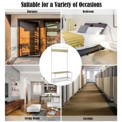 3 in 1 Industrial Coat Rack with 2-tier Storage Bench and 5 Hooks-Natural by SUNRINX