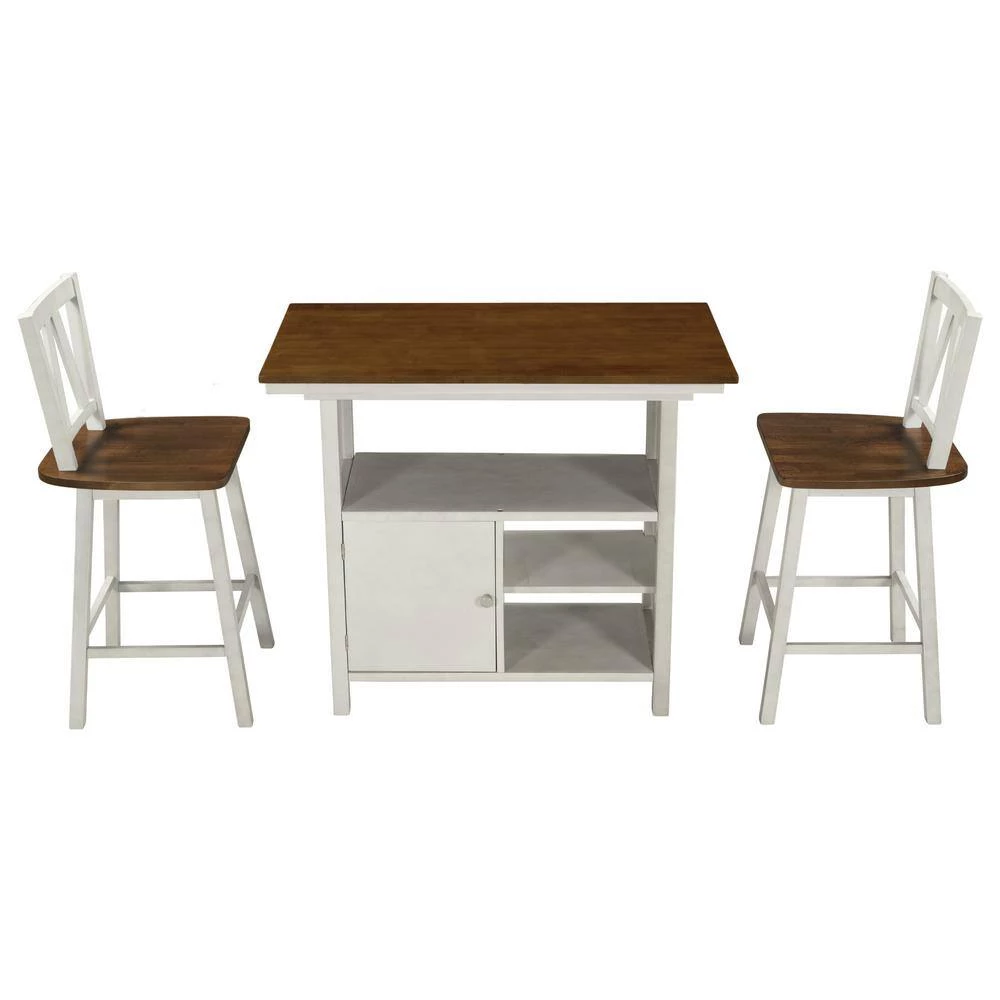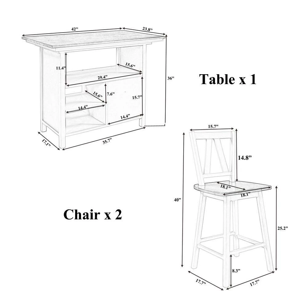 With 1 counter height table and 2 high back chairs, this dining table set perfect for small places. Distressed white and walnut colors are charming elements which decorate your home with farmhouse decor. Ensure there will be a quality dining time with your loved one.