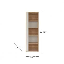 Binghamton Nature and Off White 5-Shelf Mid-Century Modern Bookcase (Set of 2) by Luxor