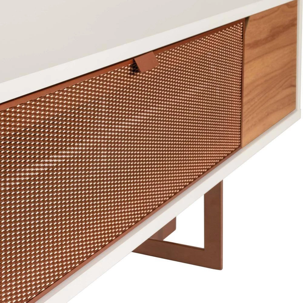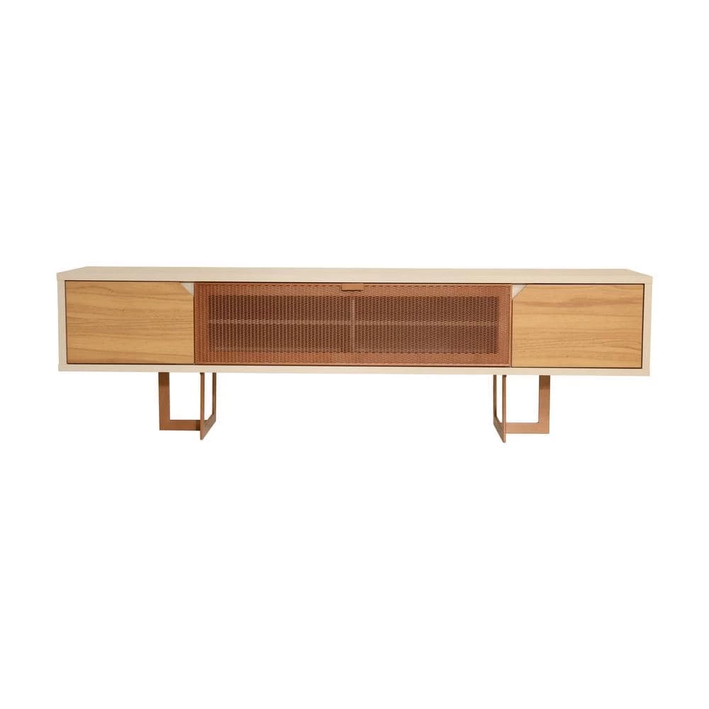 The perfect centerpiece and focal point for your living area, the Javitz TV stand makes it easy to host and entertain with ample space for a television, electronics, media accessories, and room for wine and snacks. A dropdown door conceals four compartment shelves that make it easy for tucking away remotes, DVDs, and all your entertainment essentials. 2 doors at each side with interesting cutout handles feature extra space for tucking away albums, books, and beyond. Prop a TV up top, add a decorative vase, and invite your friends or family over for the ultimate movie night in.