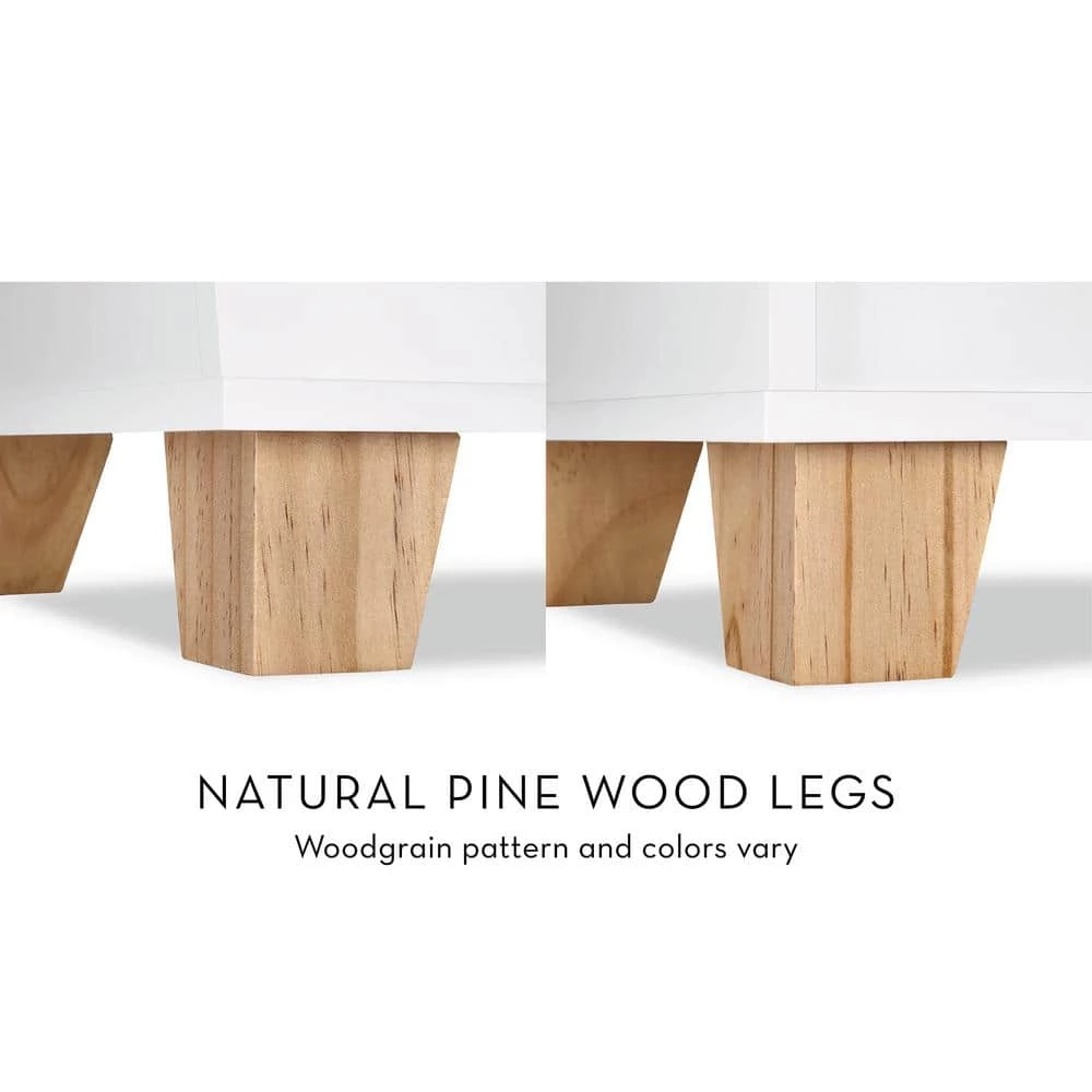 Create the perfect “catch-all” spot for all of the kids’ things with this multi-cubby organizer. Featuring 3 square cubbies and 2 spacious storage compartments, this modern toy organizer is the perfect organization solution for the playroom. With a white painted finish and 5 solid pine wood legs, its contemporary, yet versatile design adds functional style to any room. Fill the cubbies with books and puzzles and load up the bottom compartments with additional toys and games. To conceal clutter with a pop of color, add folding, fabric storage bins to the cubbies (bins sold separately). Secure to the wall with the included, easy-to-adjust anchor brackets for added safety and stability.