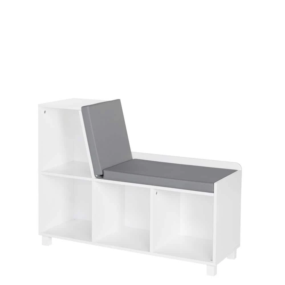 - Gray bench cushion makes for a cozy place to read, relax and play for small children.