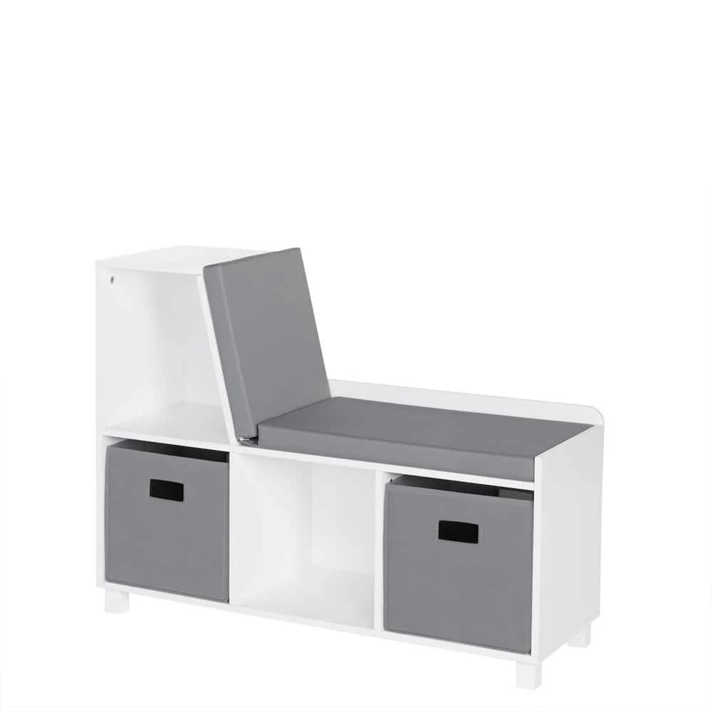 - Gray bench cushion makes for a cozy place to read, relax and play for small children.