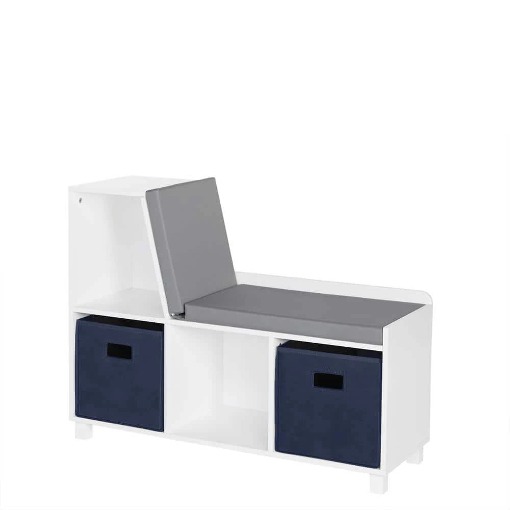 Complete your kids playroom or bedroom with RiverRidge Book Nook Collection Kids Storage Bench with Cubbies is a versatile small kids bench perfect for reading, playing and stowing away books and toys. Available with or without 2-pack of gray, turquoise or red 2-Piece Folding Storage Bins. Additional dimensions are: Square Cubbies: 11 in. W x 11.25 in. D x 11 in. H, Top Cubby: 11 in. W x 11.25 in. D x 11.94 in. H, Bottom Cushion: 20.63 in. W x 11.75 in. D x 1.5 in. H, Bin: 10.5 in. L x 10.5 in. D x 10 in. H.