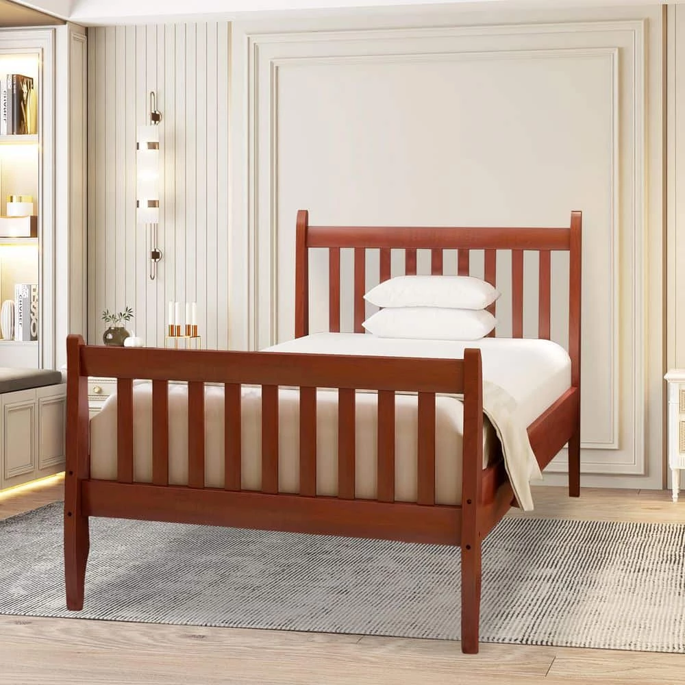 The wood platform bed with paneled headboard and footboard work well with any style of home decoration. The strong frame and legs are made of solid wood to support your memory foam, latex or spring mattress. The slats on the headboard and footboard stand are simple and stylish. The solid and manufactured wood frame hints at subtle refinement, without overpowering your current decor. You can place this bed anywhere in your room. It features a slat kit, crafted with solid wood and MDF. This comfortable style definitely fits your room.