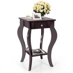18 in. Modern Accent End Table With Storage Basket.Grey Cloth Bag and Brown Top by SUNRINX
