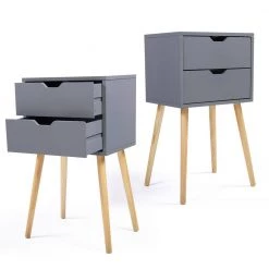 2-Drawer Gray Bedroom Storage Nightstand 28 in. (H) x 16 (W) x 12 (D) in. (Set of 2) by Edendirect