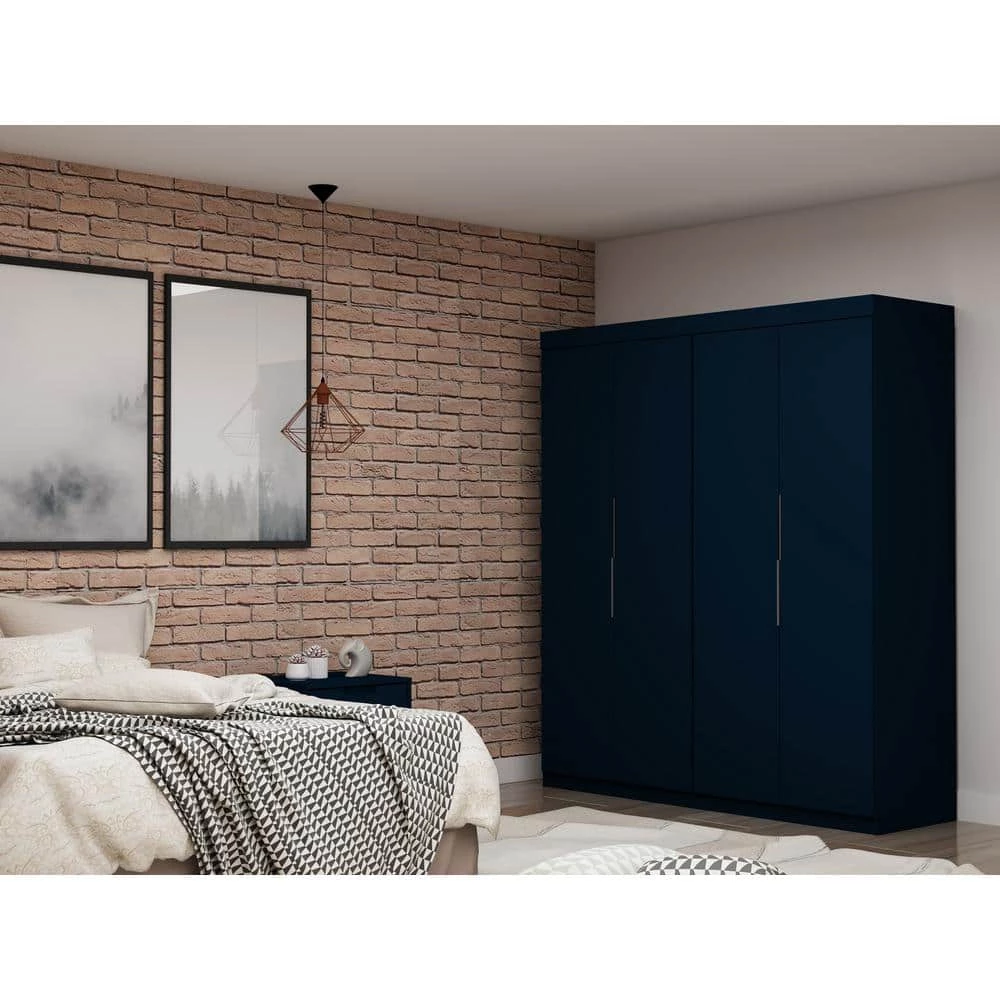 - Ample Storage in a Stylish and Space-Saving Design. Overhead Frame Dip For Extra Storage. Option to Add on Manhattan Comfort Modular Sectional Wardrobes for More Storage.