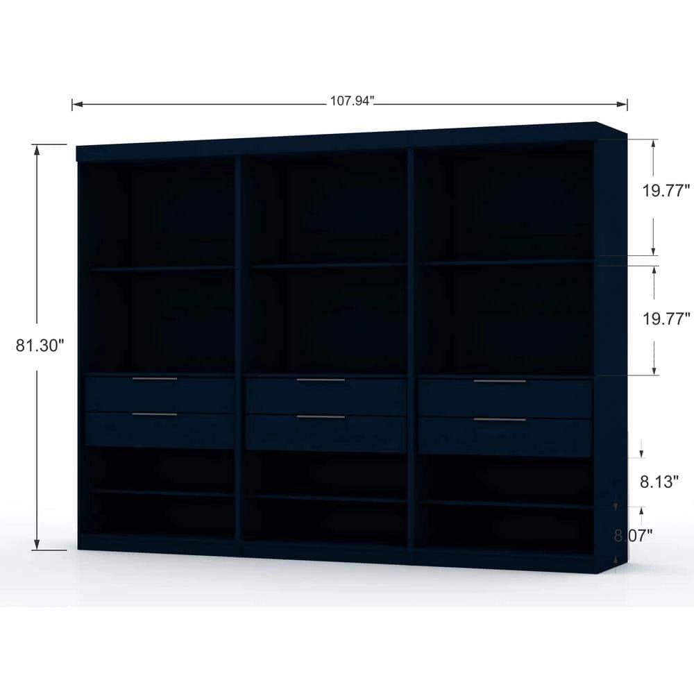 - Ample storage in a stylish and space-saving design, option to add on Manhattan Comfort modular sectional wardrobes for more storage