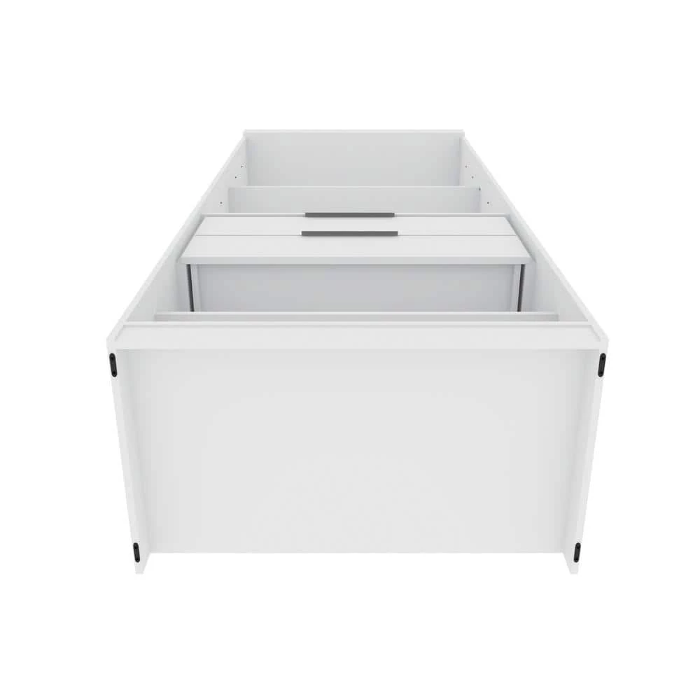 - Ample Storage in a Stylish and Space-Saving Design. Overhead Frame Dip For Extra Storage. Option to Add on Manhattan Comfort Modular Sectional Wardrobes for More Storage.