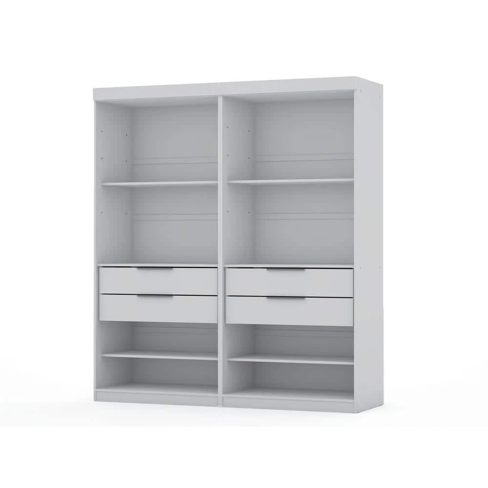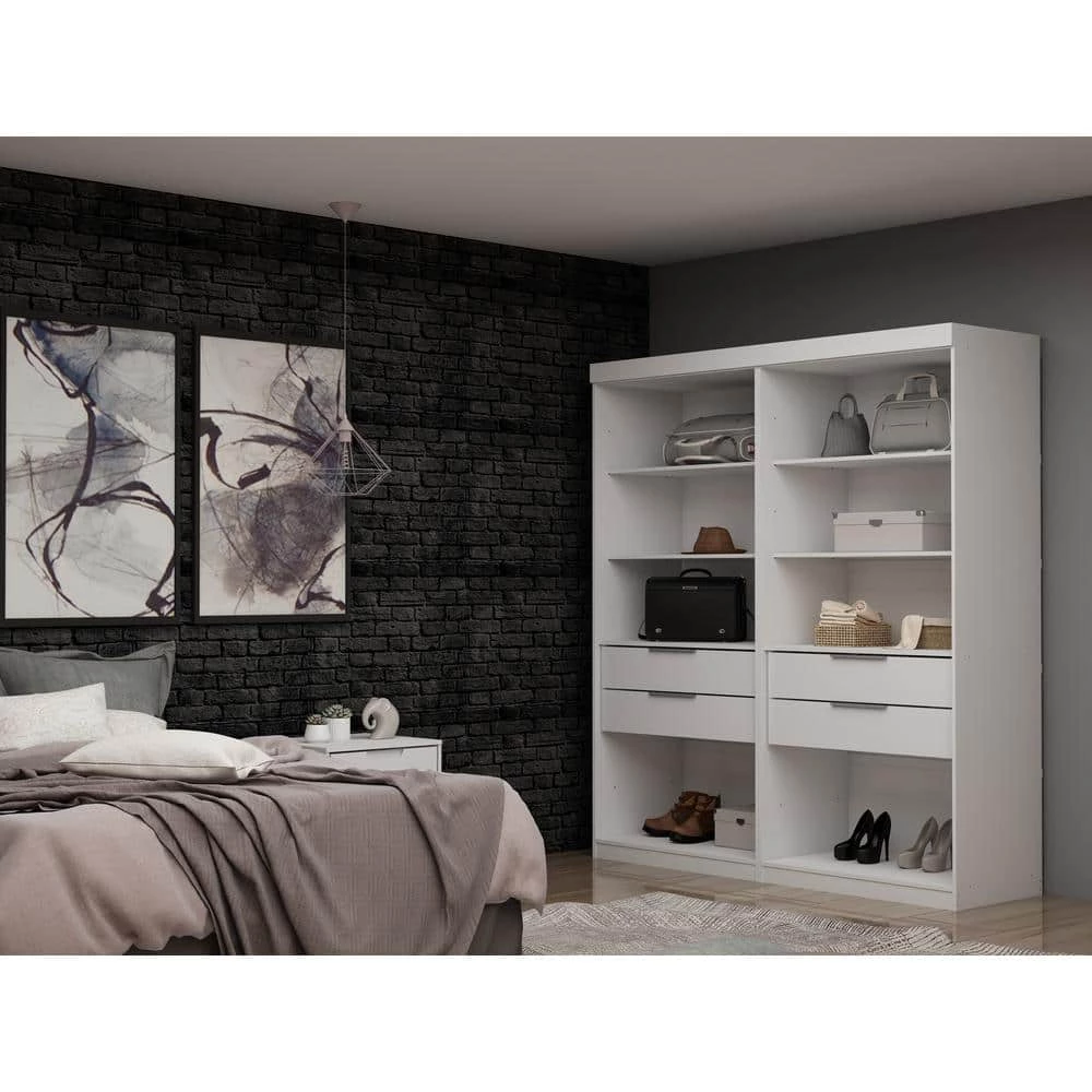 The 2-Piece Ramsey wardrobe is shelving done right with open space for keeping your favorite clothing items organized and easily accessible. A pair of drawers tuck away personal items and a larger upper shelf is perfect for displaying accessories, hand luggage, or hats. The solution for extra space has arrived and its seamless design blends well with any existing decor to keep your room looking as good as it is functional. Great in a smaller or larger space for acting as a shelving and closet unit without overtaking a space. Option to pair with additional wardrobe modules to maximize your space and storage/wardrobe needs.