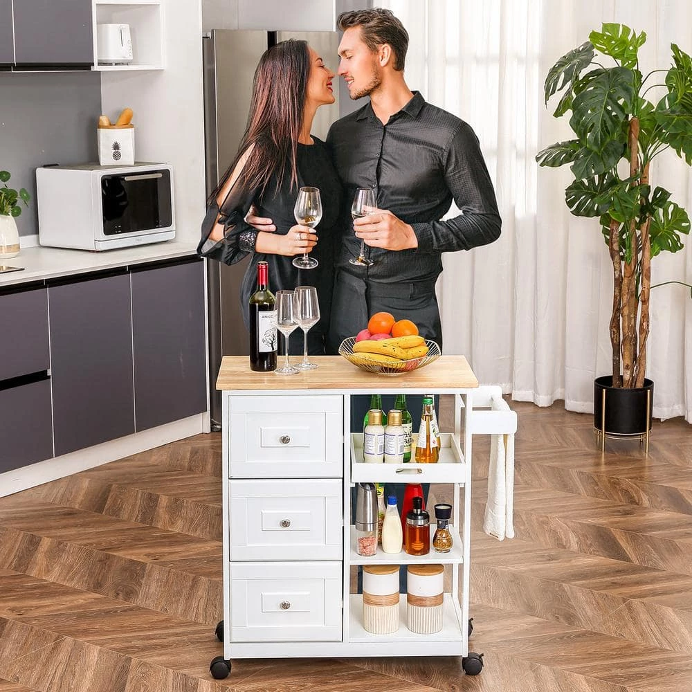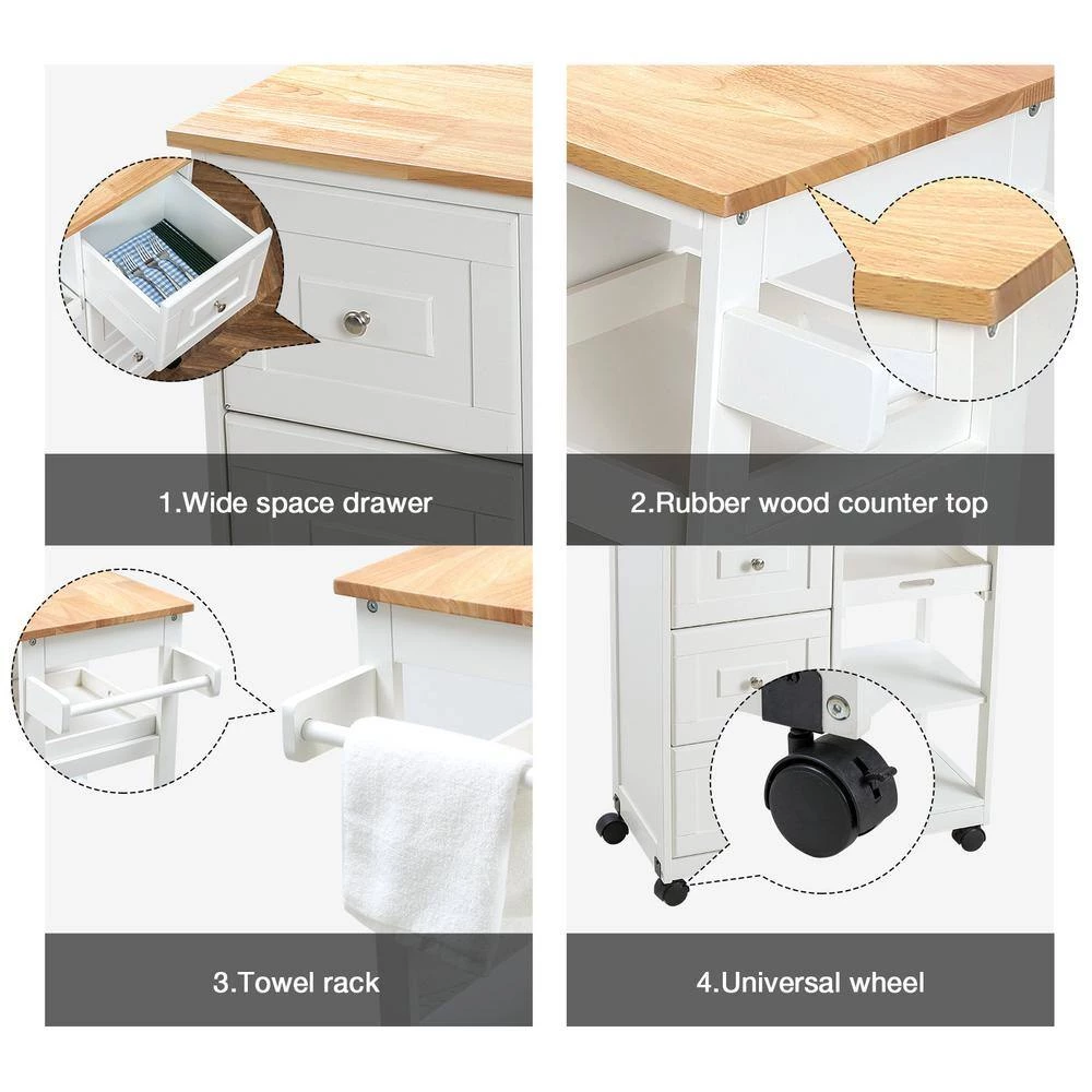 Kitchen island cart has a elegant look design,providing the practical features ,at the same time,adding extra decor to your kitchen. Widely tabletop can be used to prep food or place cutter set. To keep your kitchenware neatly organized or set the stage for your dinner more easily accessible, this kitchen island is a must-have for your abode.