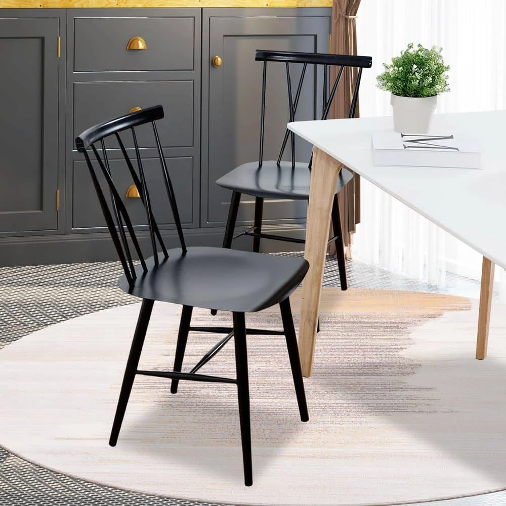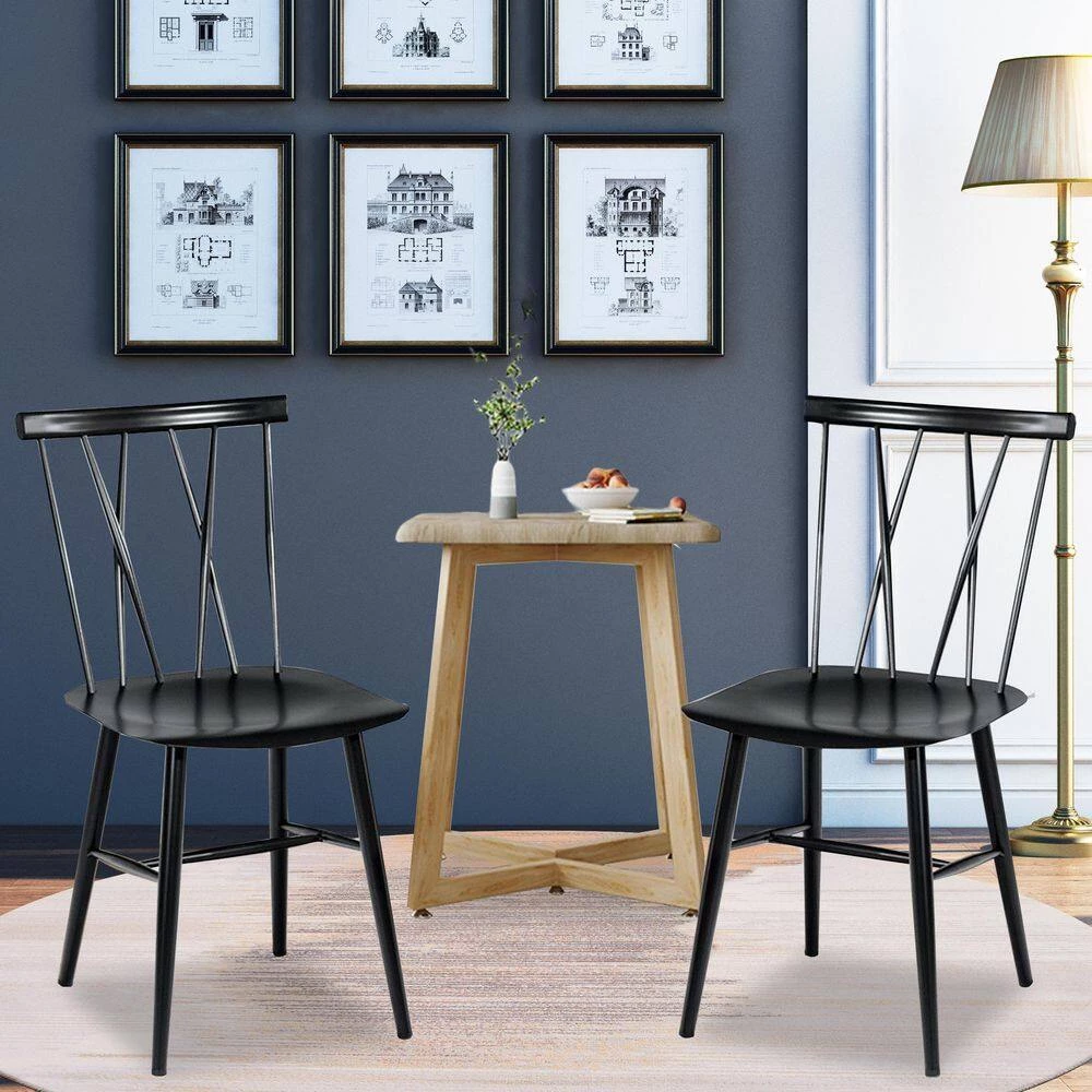 Made of superior steel, these chairs, with slat back and seat, feature heavy-duty and sturdy enough to hold up to 330 lbs of each chair and feature with simple and elegant appearance. And the ergonomic backrest design provides support to your back and reduces muscle tension and stress. In addition, this chair includes plastic feet pads to protect your flooring and offer stability. The stackable design allows you to store them easily and save more storage space at home. Therefore, whether you’re using this chair for your kitchen or bistro, it’s sure to liven up your decor.